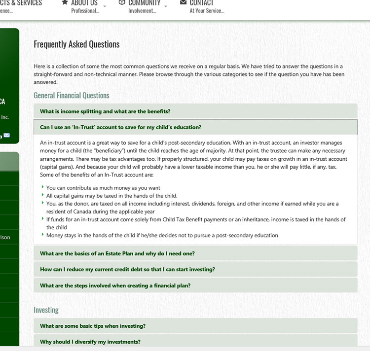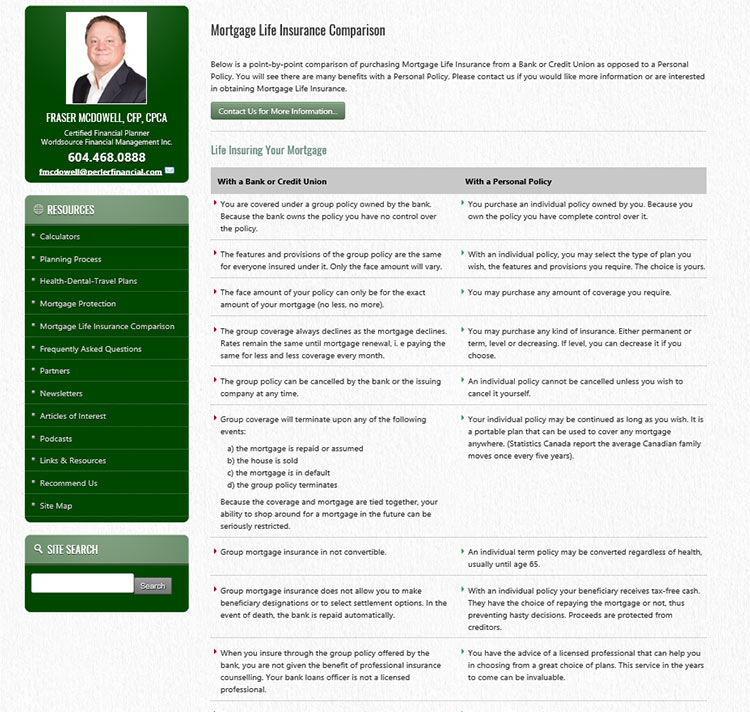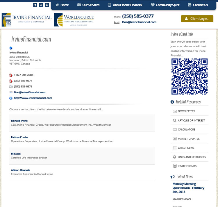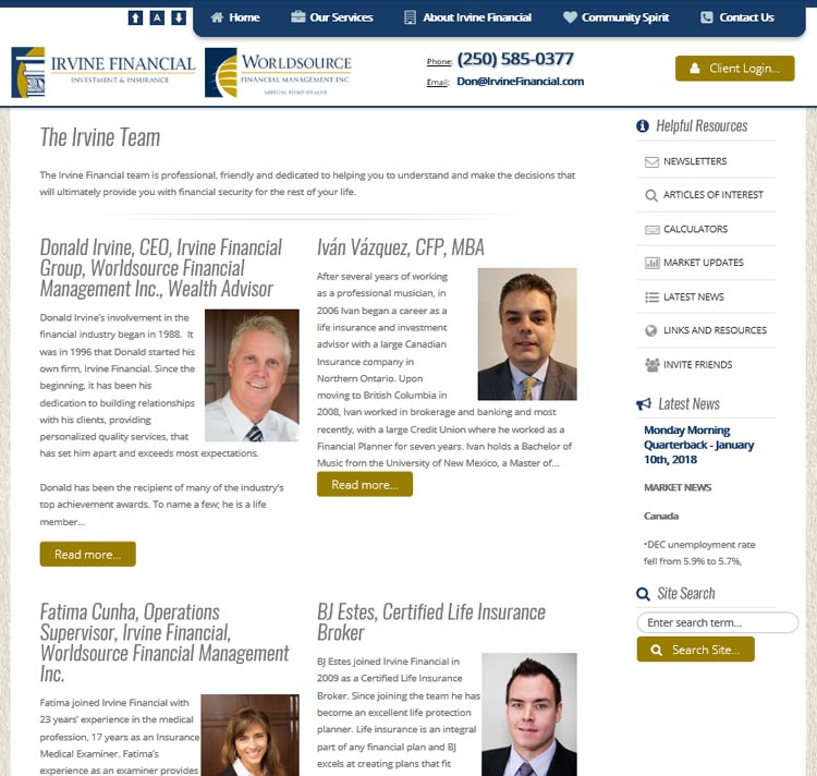New corporate website for the Nanaimo Financial Group with multiple advisors - based in Nanaimo, British Columbia.