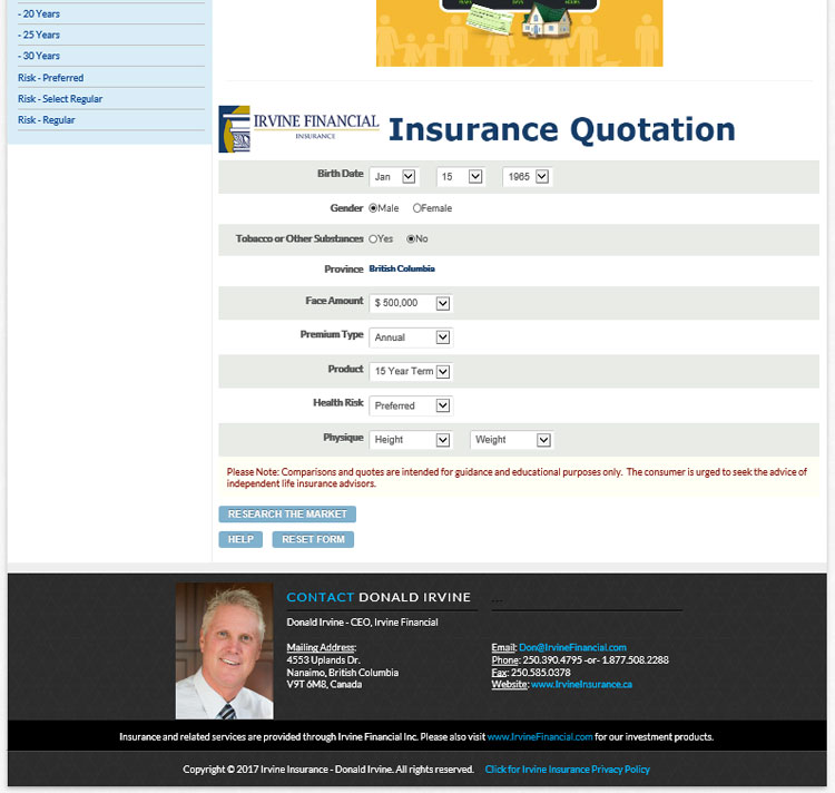 Irvine Insurance is a subsidiary of the Perler Financial Group based in Nanaimo, British Columbia.