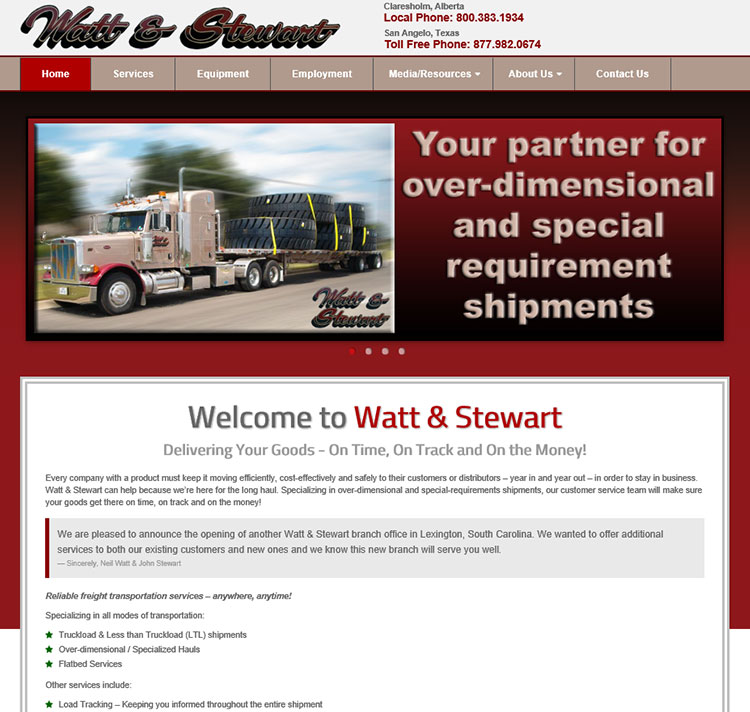 Watt & Stewart is a long haul trucking firm specializing in oversized freight. Situated in Alberta, Canada and Texas and South Carolina, United States.